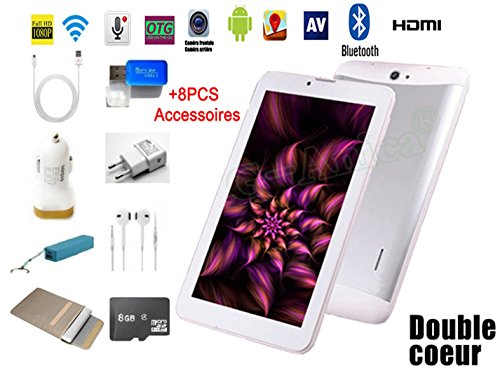 Quoi de neuf et détail complet de G-Anica® Tablette Smartphone 7" (17, 78cm) phablet débloqué 3G- Android 4.2, Dual Core, (1024x600 , Double caméra , Double Carte SIM, Bluetooth, Wi-Fi, 4Go ROM,512MBo RAM ),8 PCS Accessoires,Blanc ? cliquez sur lien ci-dessous