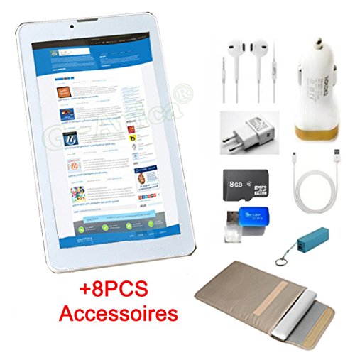 Quoi de neuf et détail complet de G-Anica® Tablette Smartphone 7" (17, 78cm) phablet débloqué 3G- Android 5.1, Quad Core, (1024x600 , Double caméra , Double Carte SIM, Bluetooth, Wi-Fi, 8 Go ROM,1GBo RAM ),8 PCS Accessoires (Blanc) ? cliquez sur lien ci-dessous