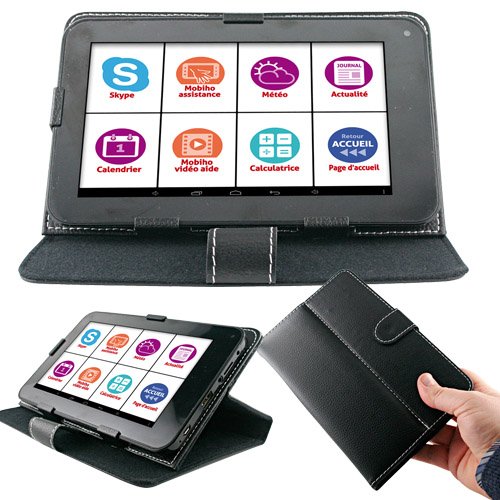 Quoi de neuf et détail complet de Mobiho Essentiel - TABLETTE 7 couleur NOIRE, wifi + Android 6.0 - INTERFACE SENIOR SIMPLIFIE - 4 Heures offertes Coach Accompagnateur privé - Pochette de rangement d'utilisation couleur rouge - Entrez, accompagné, dans l'univers du multimédia, pas à pas, à votre rythme, en faisant évoluer progressivement votre interface et vos applications. ? Suivre le lien ci-dessous