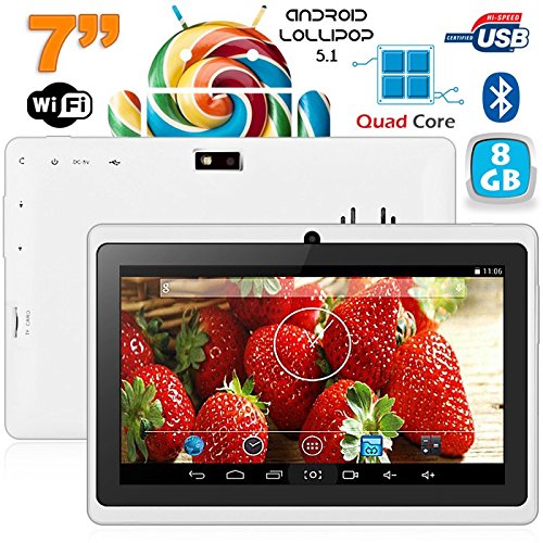 Quoi de neuf et examen complet de Tablette 7 pouces Bluetooth Quad Core Android 5.1 Lollipop 8Go Blanc ? cliquez sur lien ci-dessous